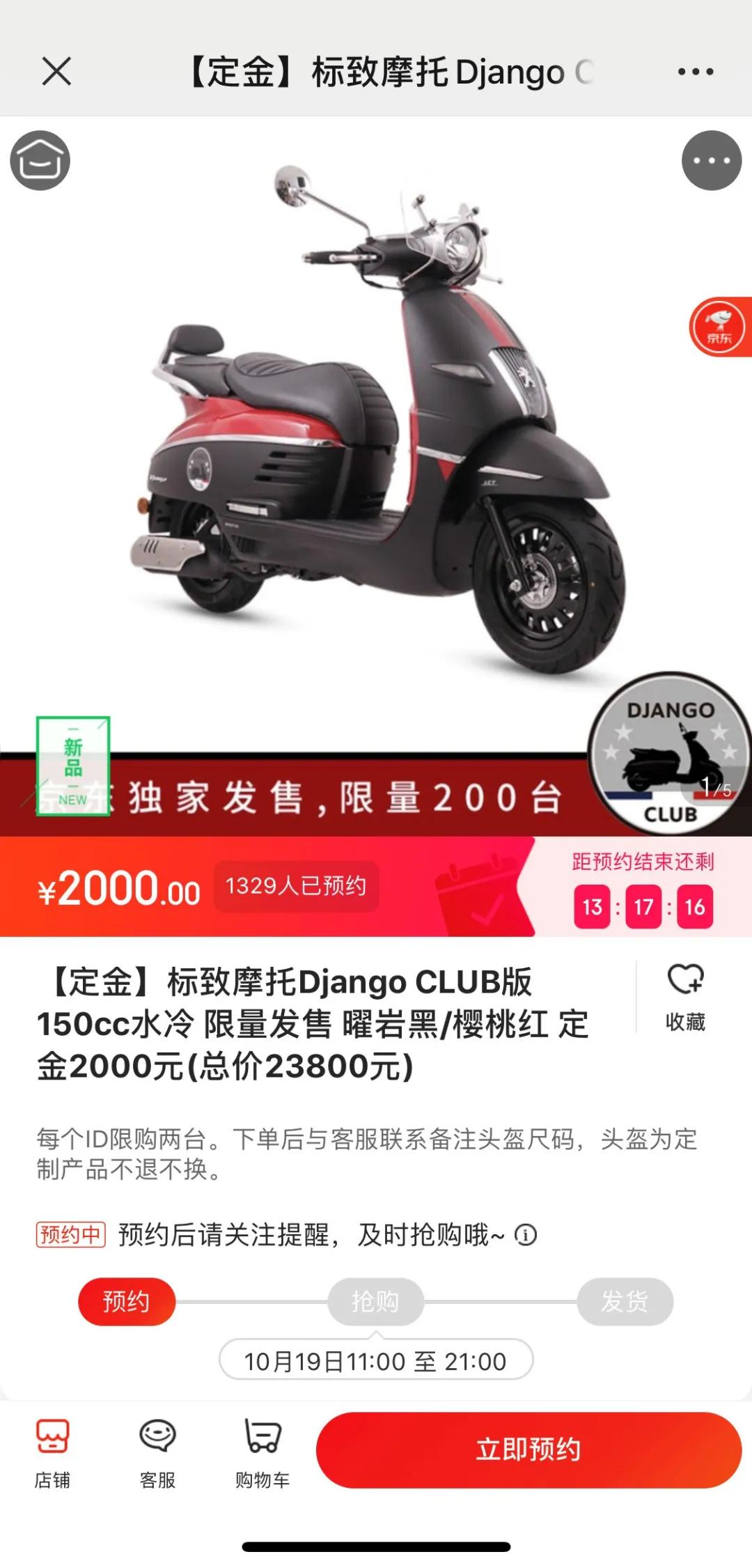 標(biāo)志今天在京東線上發(fā)售了一款限量版花色的的姜戈Club版,售價23800元限量200臺,分為櫻桃紅和曜巖黑兩種配色。售價比標(biāo)準(zhǔn)版多了1000塊錢,但是你可以獲得一個定制的碳纖維復(fù)古頭盔,以及許多官方改件,最主要的是車身比別人多了一個,全球獨一無二的專屬編號銘牌。