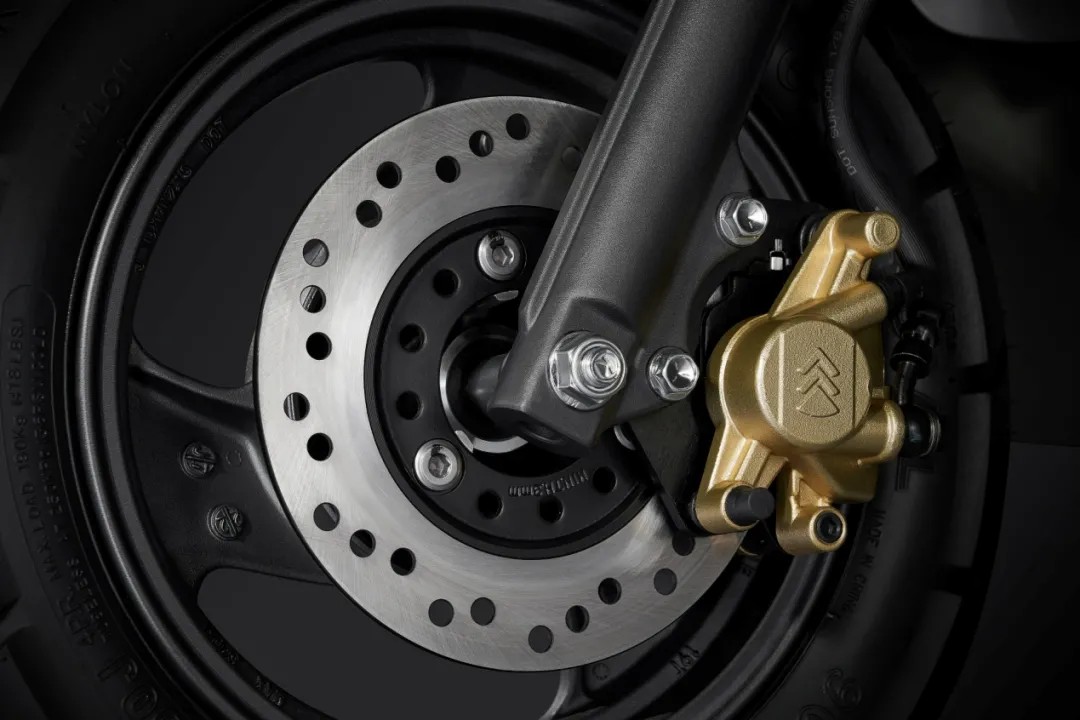 剎車和減震的規(guī)格非常常見,鑄鐵的輪圈,前碟后鼓的剎車配置沒有CBS也沒有ABS。