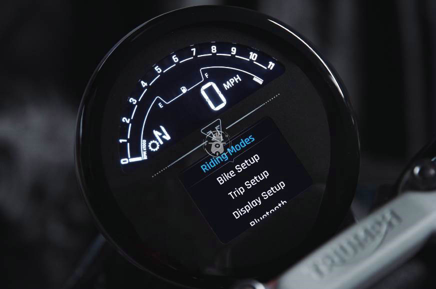 Trident 660采用彩色TFT圓形儀表盤,具備My Triumph手機(jī)連接系統(tǒng)(選裝),搭載全LED照明和ABS防抱死系統(tǒng)。擁有公路和雨天兩種騎行模式,以及可切換的牽引力控制(集成到騎行模式中),并且提供胎壓檢測和線控油門,還能夠選裝快速換擋(上下雙向)功能,這其中有很多都是同級別車型所不具備功能。