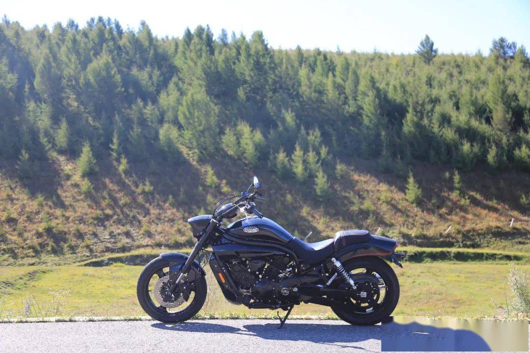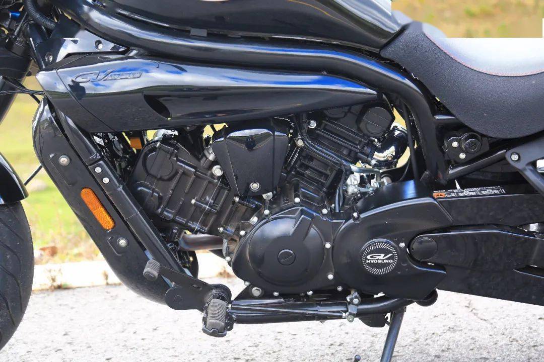 呈90°布置的氣缸有利于降低震動感,提高發(fā)動機極限轉(zhuǎn)速,增大發(fā)動機效率和性能輸出。GV650PC最大功率也達到了52.8kW(8750r/min),最大扭矩61.8N·m(7250r/min),強力的性能輸出最終通過傳動皮帶安靜柔和的驅(qū)動后輪。從發(fā)動機的出力轉(zhuǎn)速上也可以看出它與哈雷、印第安這種動輒三四千轉(zhuǎn)就爆發(fā)最大扭矩的美式巡航車完全不是一個騎法。畢竟發(fā)動機脫胎于街車,所以 GV650PC單從發(fā)動機傳遞出的感覺上來說與駕駛一臺街車也頗為相像。 你甚至可以像駕駛一臺街車那樣充滿激情的去駕駛它,隨著發(fā)動機的轟鳴聲不斷地去拉高轉(zhuǎn)速直至9000多轉(zhuǎn)的紅區(qū)都是可以的,如果換做是美式巡航這是無法想象的事情。不過因為發(fā)動機的緣故,這款車的聲浪也并不像傳統(tǒng)美式巡航車那樣有著節(jié)奏分明的馬蹄聲。