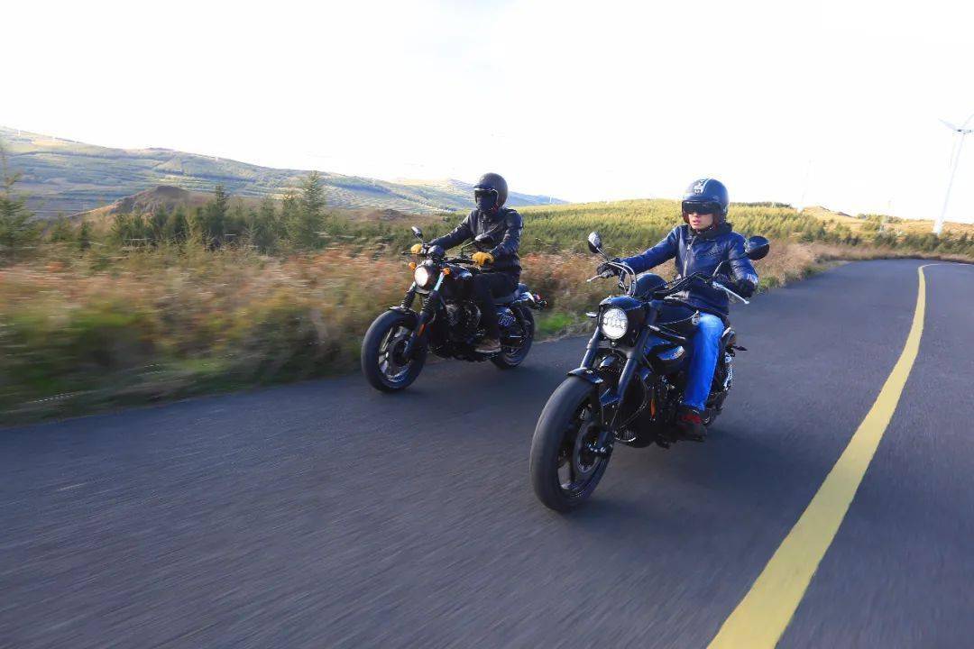 巡航狀態(tài)下, 2352mm的長尺寸車身,1680mm的長軸距,加上677mm的低座高,為騎手提供了穩(wěn)定安心的駕乘感。由于發(fā)動機特性的不同, GV650PC在巡航時的舒適感便不及傳統(tǒng)美式巡航的大低扭車型。以哈雷 Milwaukee Eight 114發(fā)動機為例, 即便在6擋,在發(fā)動機轉(zhuǎn)速低至1400rpm時給油,轉(zhuǎn)速也可以非常平穩(wěn)的拉升,不會有明顯的頓挫,兩三千轉(zhuǎn)時巡航是最舒服的區(qū)間。 GV650PC六擋巡航時在四五千轉(zhuǎn)是相對舒適的區(qū)間,低于四千轉(zhuǎn)則開始有拖擋的感覺,轉(zhuǎn)速拉升較慢,而轉(zhuǎn)速六千轉(zhuǎn)以上時,手把和腳踏處的震動也會逐漸加大。 GV650PC或許在外觀上跟美式風格有一些類似,但是騎起來卻是兩種感受,所以 GV650PC更適合帶有激情的去駕駛它。