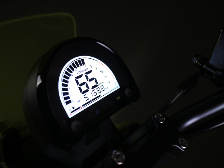 頭燈使用LED形式,轉(zhuǎn)向燈則是采用傳統(tǒng)鹵素?zé)襞莸男问?,半圓形的LED儀表設(shè)計(jì)風(fēng)格簡(jiǎn)約,白底黑字的配色辨識(shí)度很高。最上面是轉(zhuǎn)速,最下面為油量,中央部分是時(shí)速顯示,時(shí)速下面試?yán)锍獭?/p>