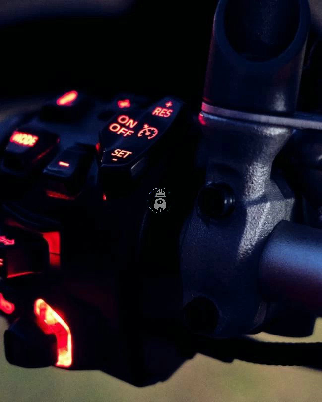 自適應(yīng)巡航控制機(jī)制,通常用于汽車中,可幫助車輛保持安全距離,并且為了更多的安全預(yù)防措施,它還允許車輛在駕駛員設(shè)定速度限制之內(nèi)定速行駛。而基于汽車ACC系統(tǒng)的博世雷達(dá)被加以改進(jìn),進(jìn)而可以使用在摩托車上,杜卡迪專門針對這套系統(tǒng)對開關(guān)進(jìn)行了修改(下圖),我們可以從照片當(dāng)中中清楚地看到相關(guān)的按鍵。