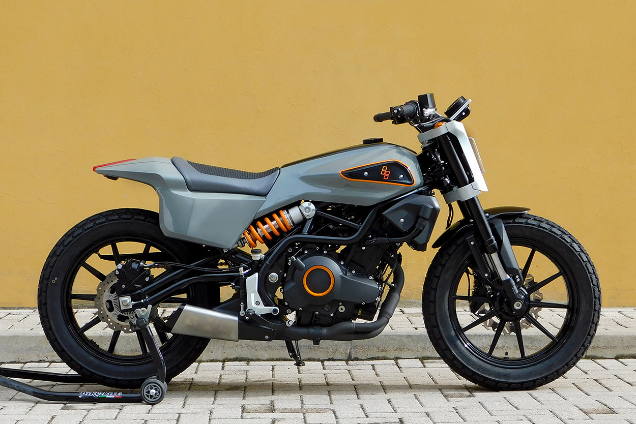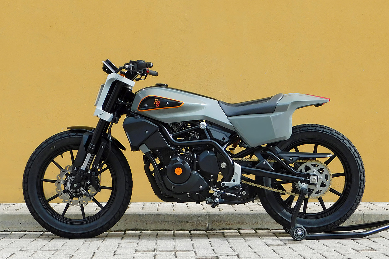然而在國外早就有人迫不及待,一家意大利工業(yè)設(shè)計公司,已經(jīng)看到了這臺小型雙缸車型的潛力,因此他們打造了屬于自己的“338”原型。就像哈雷338R一樣,它同樣以貝納利302S為基礎(chǔ)。
