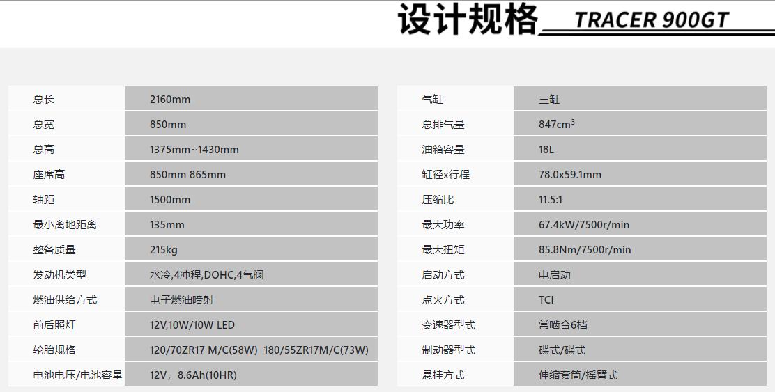 最核心的動(dòng)力部分卻掉了鏈子,雅馬哈Tracer 900 GT,搭載與“扭力大師MT-09”同平臺(tái)的CP3發(fā)動(dòng)機(jī),看似沒(méi)有毛病。但是該車(chē)國(guó)外版本的動(dòng)力數(shù)據(jù)是84.6kW(115PS)/ 10,000rpm,87.5Nm/8,500rpm,與MT-09保持一致。國(guó)內(nèi)在售的MT-09也沒(méi)有被閹割動(dòng)力,但是Tracer 900 GT國(guó)內(nèi)版本動(dòng)力被閹割了,最大功率67.4kW/7500rpm,最大扭矩85.8Nm/7500rpm,功率輸出少了17.2kw(23.4Ps)。再回頭看13.98萬(wàn)的售價(jià),這個(gè)價(jià)格你還覺(jué)得香嗎?