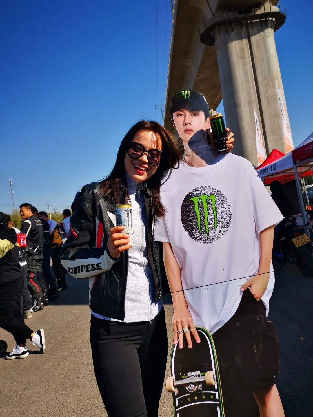 女士和王一博合影