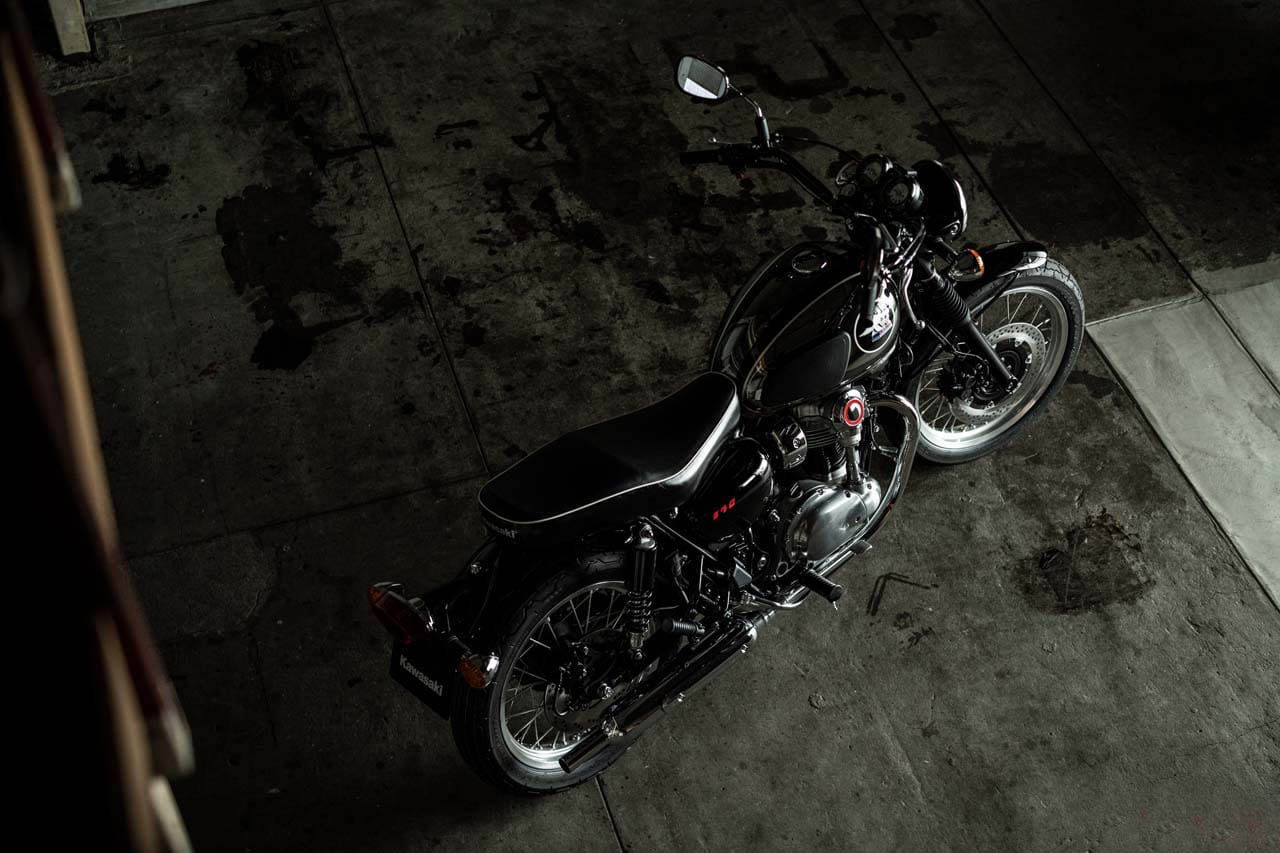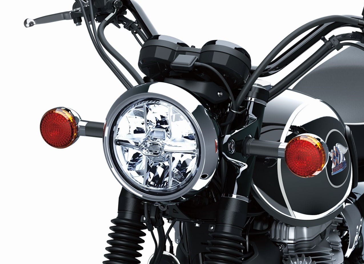 發(fā)動(dòng)機(jī)和車(chē)身規(guī)格均基于W800(上圖),車(chē)輪尺寸為前輪19英寸,后輪18英寸,車(chē)重為227kg,比W800重1kg。座椅高度790mm,與W800相同,車(chē)把比較寬型,有一種“騎馬”的風(fēng)范。