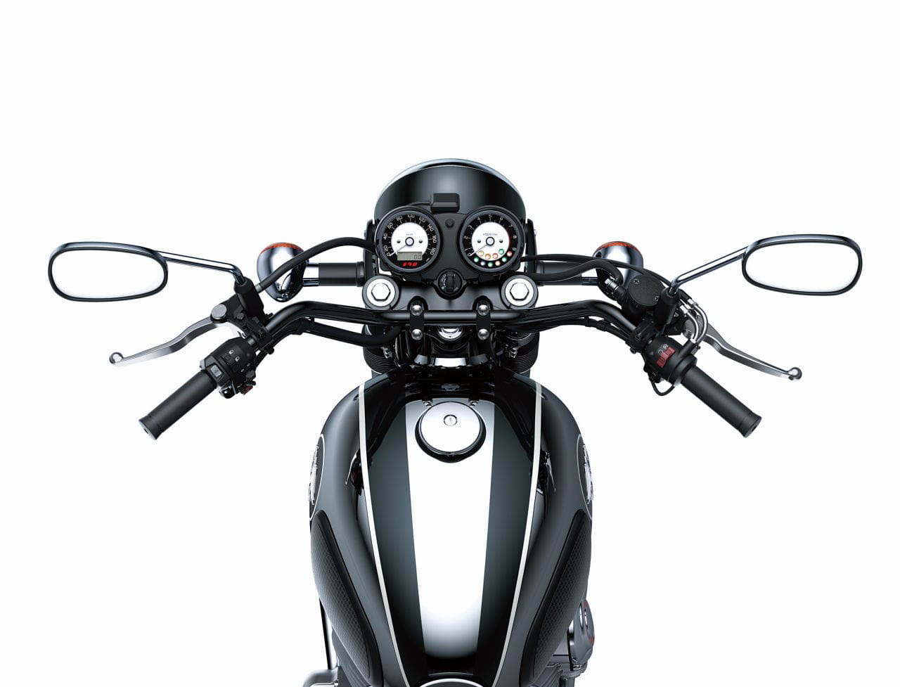 車(chē)身顏色基于深黑檀木色,并且前擋泥板,后擋泥板,前叉外管,后懸架蓋,車(chē)把,縱排手柄,前照燈車(chē)身,前照燈撐桿和尾燈支架均涂有光澤黑色。此外,不銹鋼儀表環(huán)通過(guò)黑色氧化膜處理加強(qiáng)金屬質(zhì)感,燃料箱采用銀色鏡面涂層,并選擇與所用材料相匹配的表面處理方法,從而使每個(gè)部件的色調(diào)都發(fā)生變化。