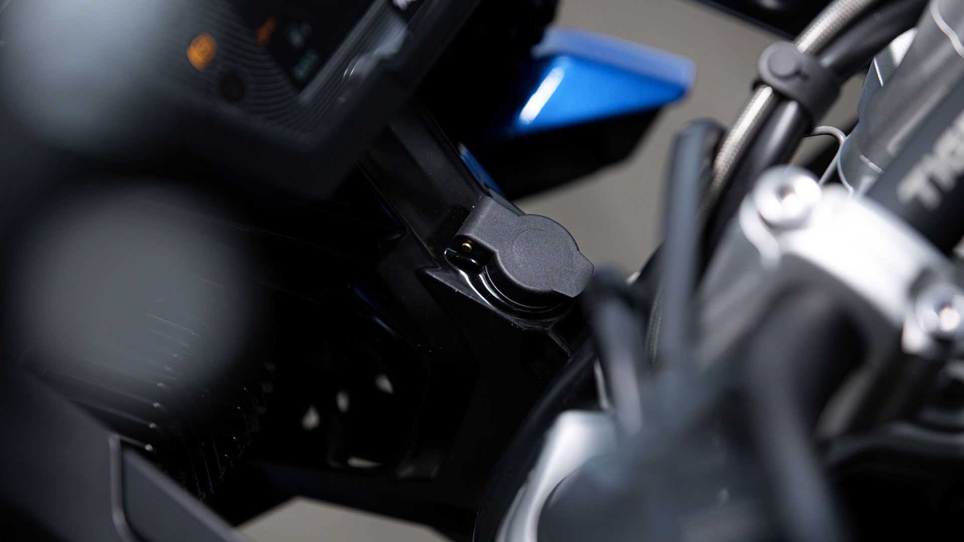 配置方面,采用線控油門和滑動輔助離合器,12V插座,可調(diào)節(jié)的風(fēng)擋和可選的牽引力控制裝置。5英寸的全彩TFT儀表板,擁有兩種騎行模式:道路和雨天,每種模式都可在保持全功率的同時,調(diào)整油門輸出特性和牽引力控制,牽引力控制可以在道路和雨天設(shè)定之間獨立切換,也可以完全關(guān)閉。