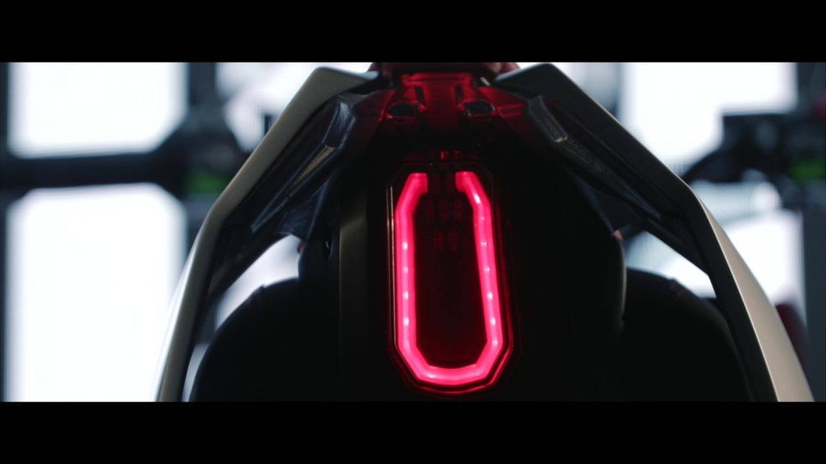 坐墊寬大但后座的設(shè)計(jì)和仿賽車型差不多,甚至是類似跑車的單座蓋的造型,由此可見(jiàn)這款車主打單人騎乘和運(yùn)動(dòng)。車尾收窄角度上翹,從這個(gè)角度看應(yīng)該是一款運(yùn)動(dòng)型電動(dòng)踏板。