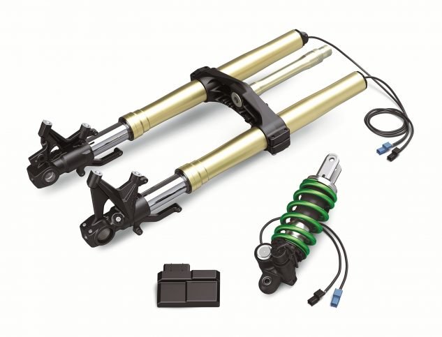 Z H2 SE根據(jù)所選的綜合騎行模式(運動,道路,雨天,騎手(手動))使用運動型43毫米昭和SFF-CA(彈匣)前叉和高規(guī)格BFRC精簡版后減震和基礎減震字符集。然后,KECS會根據(jù)車輛速度,沖程速度和減速度實時調整路面環(huán)境,以提供理想的阻尼。