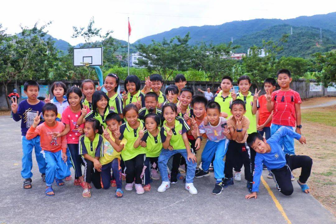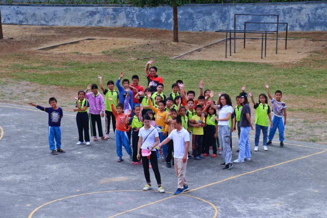 21日,車隊(duì)迎著朝陽來到高州市古丁鎮(zhèn)朗八小學(xué)。剛剛到達(dá)就受到了當(dāng)?shù)匦∨笥褌兊臒崃覛g迎(幾乎都是留守兒童)。