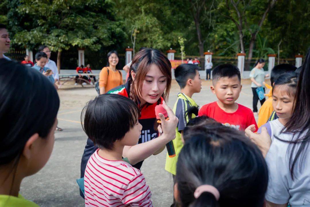 經(jīng)過簡(jiǎn)短的參觀和交流,我們和孩子們一起參加鄉(xiāng)村運(yùn)動(dòng)會(huì)。簡(jiǎn)單的道具,簡(jiǎn)單的規(guī)則,你一點(diǎn)點(diǎn)的關(guān)懷就能換來陽光燦爛的笑容。你的一絲絲幫助就能給這些天真稚嫩的孩子帶來歡樂。