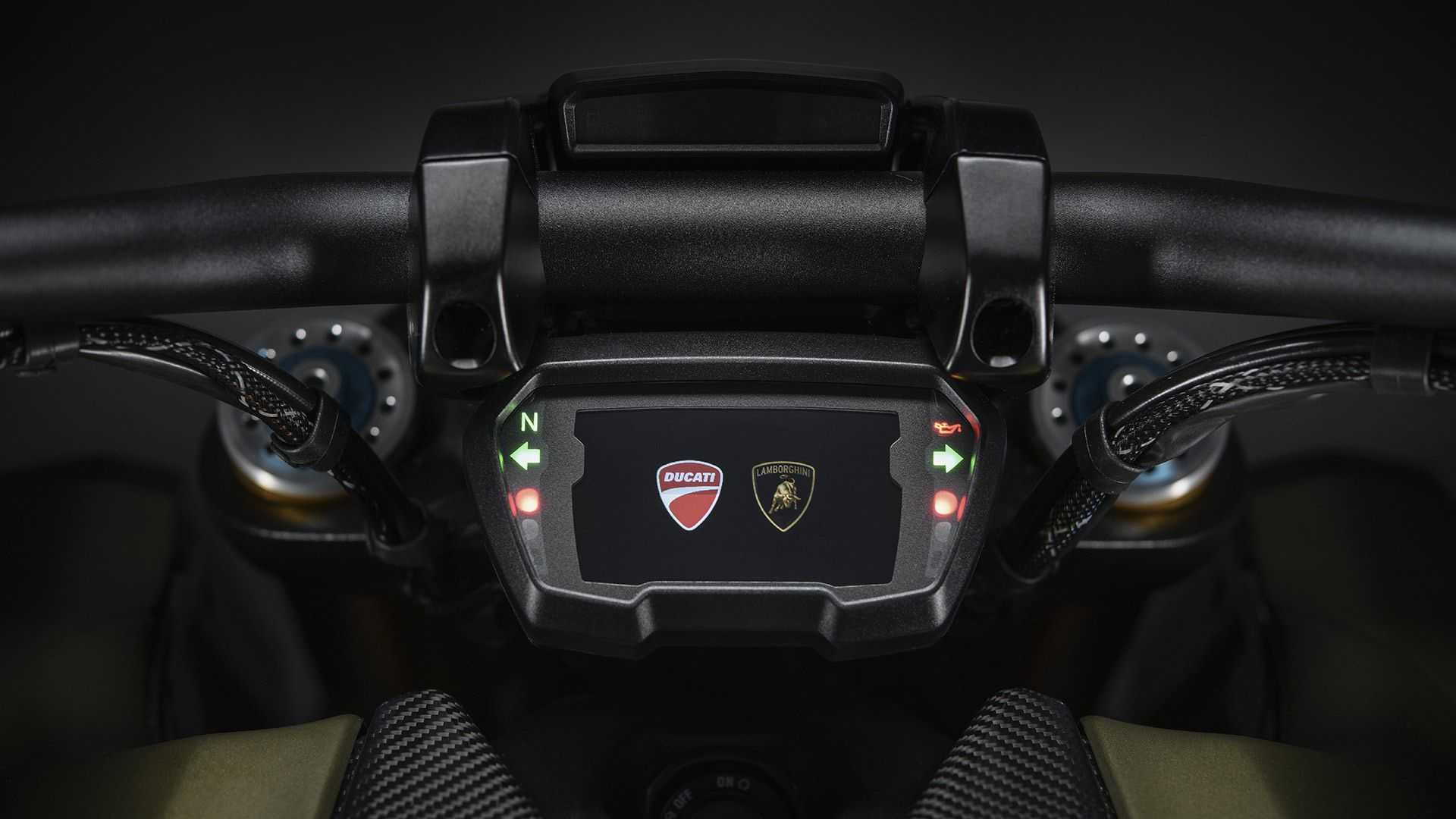 新的TFT顯示屏啟動(dòng)屏幕,同時(shí)顯示杜卡迪和蘭博基尼lgog,以及摩托車車輪廓的圖像,蘭博基尼徽標(biāo)也出現(xiàn)在加油口蓋的后面。