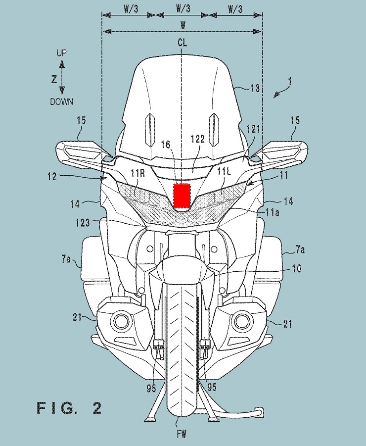 那么,本田的新專利是什么?在某種程度上,它正在解決一個(gè)似乎困擾每個(gè)采用這種技術(shù)的品牌所面臨的問,而且要隱藏雷達(dá)傳感器本身。雖然裝有這種系統(tǒng)的汽車,通常將雷達(dá)藏在格柵或保險(xiǎn)杠后面。但到目前為止,我們所見過的所有使用雷達(dá)的摩托車,都已將這些裝置完全暴露在外,這表明他們一直在努力尋找解決方案,但是不得不在外觀設(shè)計(jì)上妥協(xié)。本田也正在解決這個(gè)問題,雖然雷達(dá)可以“看穿”包括塑料在內(nèi)的某些材料,但其表面必須相對(duì)光滑且平坦,以確保不會(huì)干擾雷達(dá)波。對(duì)于本田而言,幸運(yùn)的是,金翼大燈之間的區(qū)域已經(jīng)相當(dāng)平坦且整潔,并且計(jì)劃將雷達(dá)放置在面板后面,安裝在特定的支架上,支架從現(xiàn)有的前整流罩和儀器框架延伸出來。