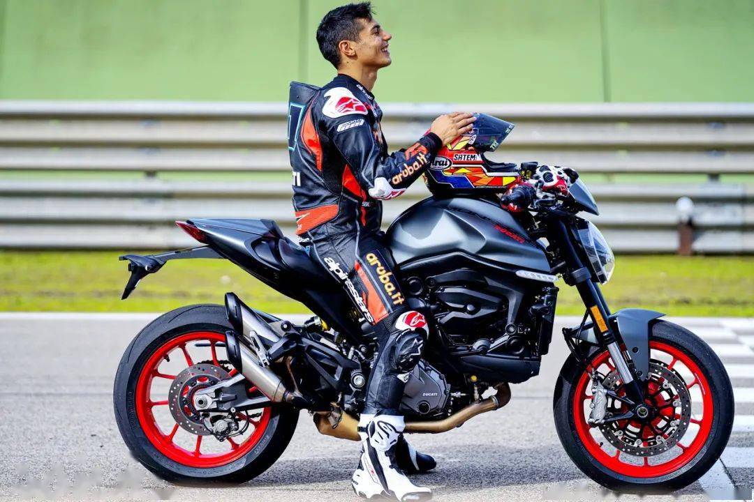 下面的圖片, “ 怪獸 ” Monster +。而露臉的駕駛者,是杜卡迪 WSBK 工廠車隊(duì)在 2021 賽季的車手里納迪(Michael Ruben Rinaldi)。