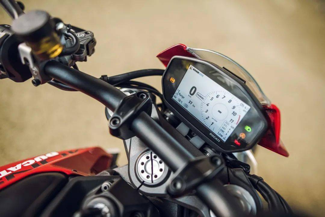 車體方面,新車有一個更加突出棱角的車身設(shè)計(jì),“ 野牛脊背 ” 形狀的油箱、“ 肩嵌式 ” 的圓形頭燈、簡潔的尾部,而裸露的發(fā)動機(jī)則位于整個視覺場景的中心。鋁制的前車架采用了與超級跑車 Panigale V4 相同的設(shè)計(jì)概念 —— 很短、并直接連在發(fā)動機(jī)的上方,整個車架重量只有 3 公斤,比以前的車架輕 4.5 公斤(重量減少了約 60%),此舉為全車的干燥重降低至只有 166 公斤(現(xiàn)行款的 “ 怪獸 ” 821 干燥重量為 180.5 公斤)作出了重大的貢獻(xiàn)。