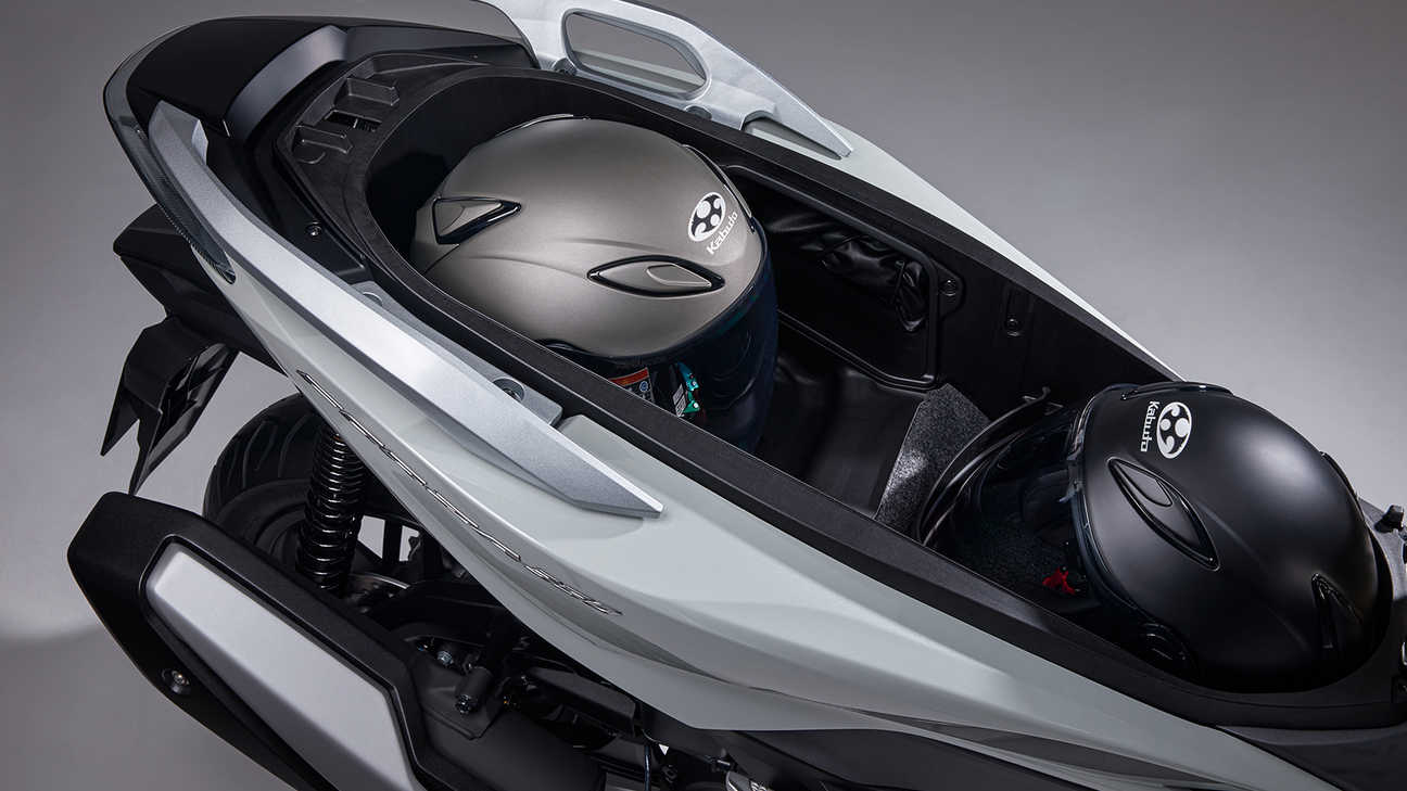 本田NSS350配置方面,更是這個(gè)級(jí)別的標(biāo)桿,ESS緊急制動(dòng)雙閃功能、HSTC牽引力控制、電動(dòng)調(diào)節(jié)風(fēng)擋、無(wú)鑰匙啟動(dòng)系統(tǒng)、能夠放進(jìn)兩頂全盔的座桶。另可以選裝電加熱手把,35L或者45L的尾箱。