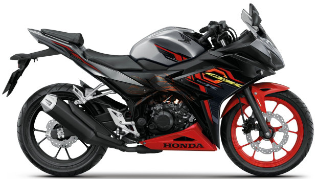 2020年的本田CBR150R,具有四種顏色選擇:黑色/紅色,黑色/橙色,灰色/紅色和紅色/黑色。新車型沒有Repsol Edition涂裝,在四種顏色方案中,灰色/紅色組合最有新意。此外,它還具有不同顏色的合金輪轂,前部為紅色,而后部為黑色。