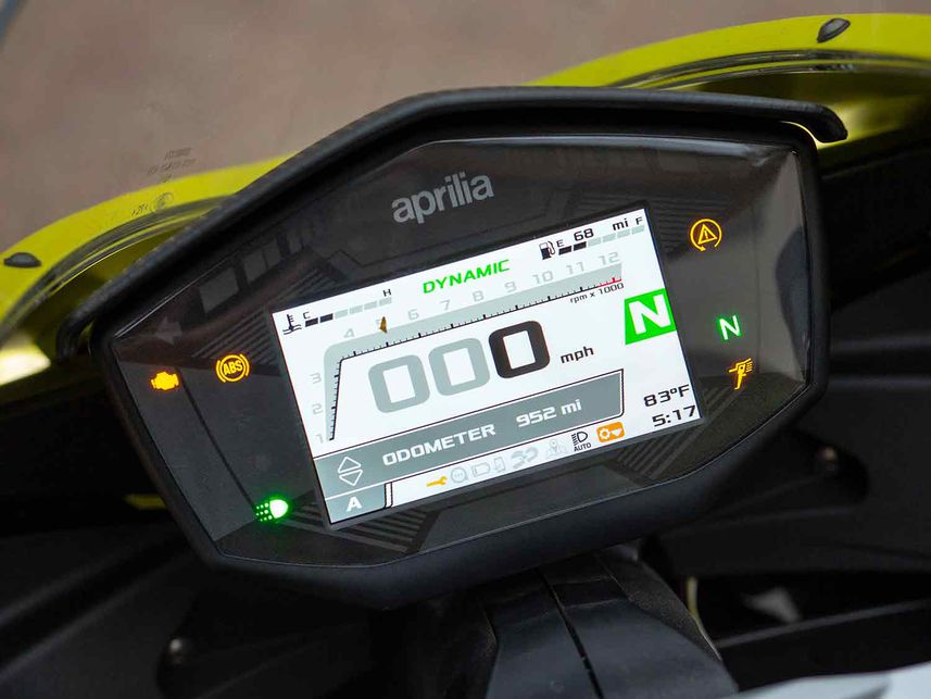 AEM: Aprilia Engine Map駕駛模式,三個常用模式:Commute(日常)、Dynamic(運動)及Individual(自定義),另外兩個賽道模式,分別是Challenge(挑戰(zhàn))及Time Attack(計時)。