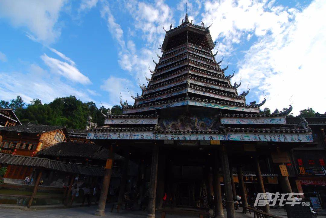 買票后,摩托車可以騎進(jìn)景區(qū),在任何一條街巷中隨意通行,汽車則只能在主路上通行。西江苗寨最經(jīng)典的風(fēng)光是高處俯視布滿兩座山頭的密集建筑,去觀景臺(tái)要順主街穿過人流上到坡頂,在這里眺望對(duì)面的主寨,兩座山頭上密密麻麻擠滿了吊腳樓,與自然融為一體的西江苗寨已成為一道自然奇觀。吊腳樓和風(fēng)雨橋是千戶苗寨的標(biāo)志性建筑,每天都有的當(dāng)?shù)鼐用衩缱甯栉璞硌菀埠芫?,尤其是苗族長(zhǎng)者演繹的苗族古歌,在別的地方是很難見到的。若是能在苗年節(jié)、吃新節(jié)以及十三年一次的牯藏節(jié)期間前來,你更會(huì)感覺不虛此行。
