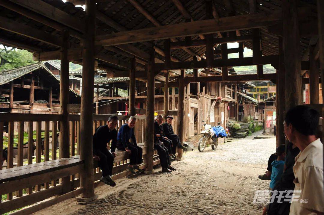 基佑苗寨里面的路非常陡峭,摩托車要從村口駛到寨子的制高點(diǎn),必須全程一擋大油門。寨子里的建筑呈無規(guī)則狀態(tài)見縫插針占滿半邊山坡,平地是非常罕見的。漫步其間,你能看到踩動(dòng)木紡車紡線的苗族老太太,用泉水沖刷烏黑長(zhǎng)發(fā)的少婦,烏溜溜黑眼珠好奇打量你的兒童,還有對(duì)你視而不見的大大小小的白色田園犬。耳邊是不知從哪里傳來的流水聲,鳥蟲的和鳴,山風(fēng)掠過密林的呼嘯……沒人會(huì)在意你的到來,但你的每一分禮貌都會(huì)換來加倍的回饋,那種人與人之間本該有的真誠和坦蕩,在這個(gè)古老的苗寨村落里體現(xiàn)到讓你像是回到了久別的家園?;哟蹇诘暮商吝呌袛?shù)家食宿一體的苗家木樓客棧,條件很好收費(fèi)也不高。