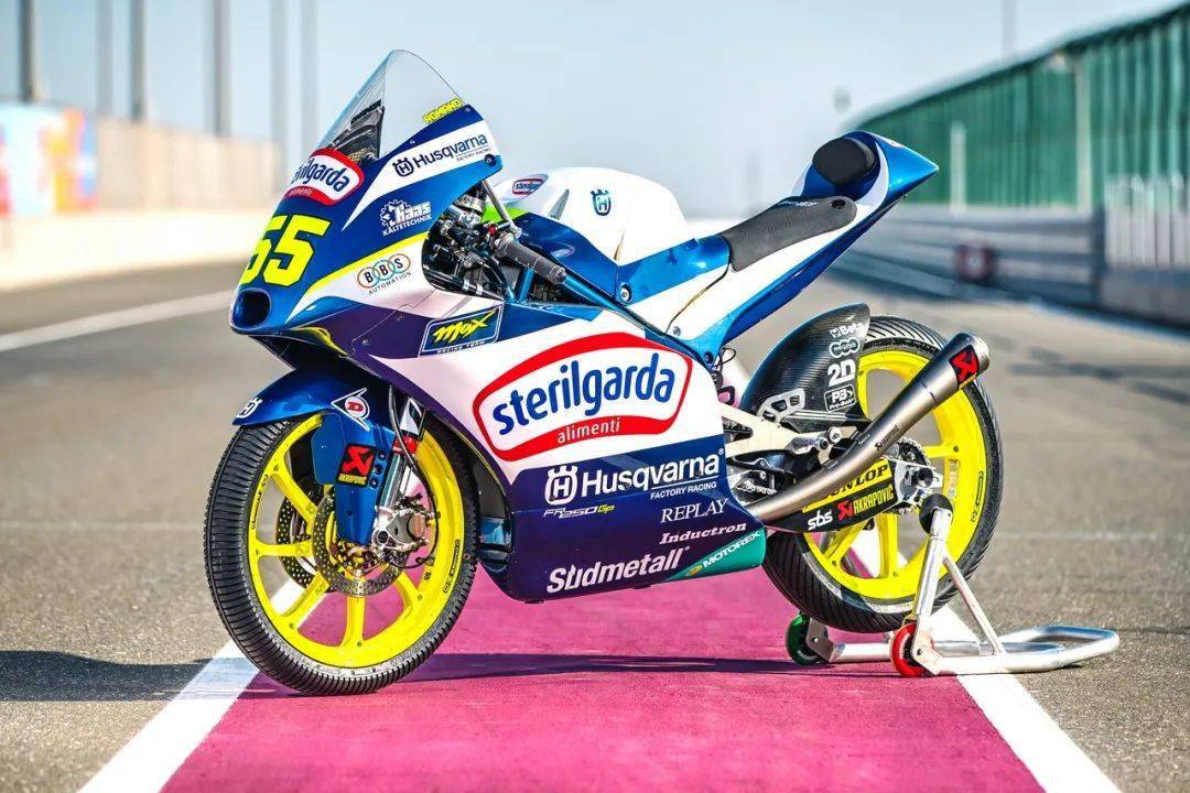 下面的圖片,參加 2020 賽季 Moto3 級(jí)別比賽的 Husqvarna 胡斯瓦那 FR250GP 賽車(chē)。