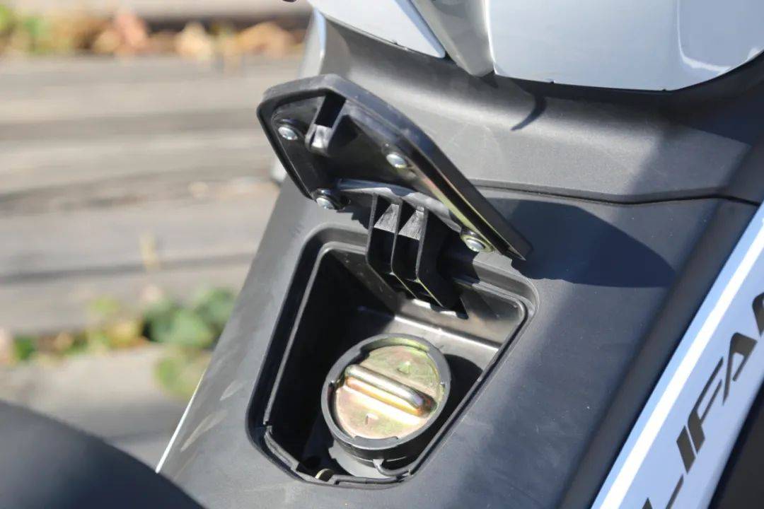 目前同級(jí)別最大中置油箱,前置加油口其容積達(dá)到了11L。猜測(cè)350公里左右續(xù)航應(yīng)該是能保證的,基本可以告別傳統(tǒng)踏板用戶總需要關(guān)注燃油表狀態(tài)這一常態(tài)化駕駛習(xí)慣了。在這方面KPV150的槽點(diǎn)也很明顯,采用下置油箱其加油口位于前部,但開(kāi)啟油箱的開(kāi)關(guān)卻位于座桶內(nèi),而且采用了非常規(guī)的簡(jiǎn)易拉索開(kāi)啟形式,原本的“便利”反而成了“麻煩”。