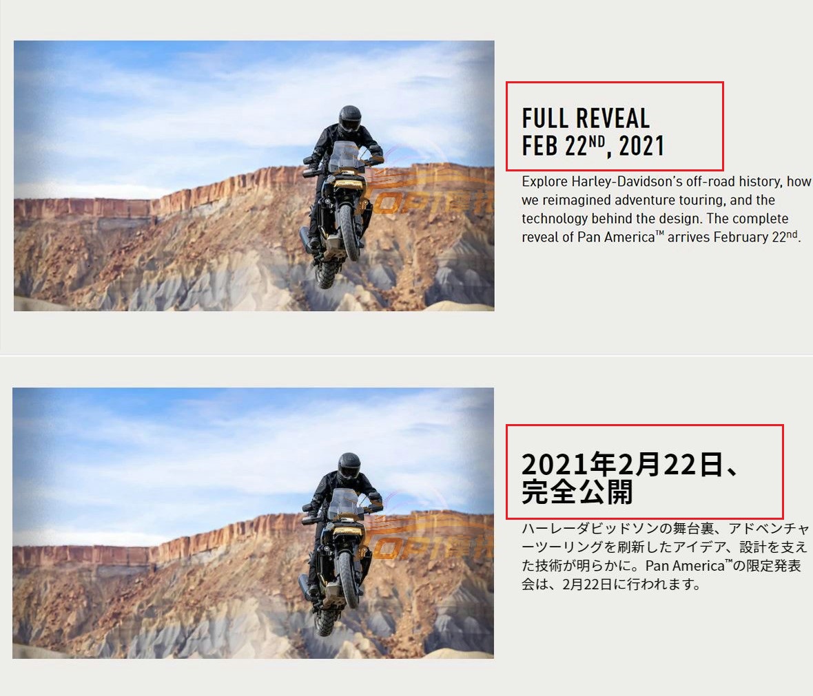 哈雷·戴維森(Harley Davidson)昨天發(fā)布消息,將于2021年1月20日舉行全球在線發(fā)布會(huì)活動(dòng),首款A(yù)DV車型Pan America(泛美)會(huì)在當(dāng)天正式亮相,然后在明年2月22日正式開賣。