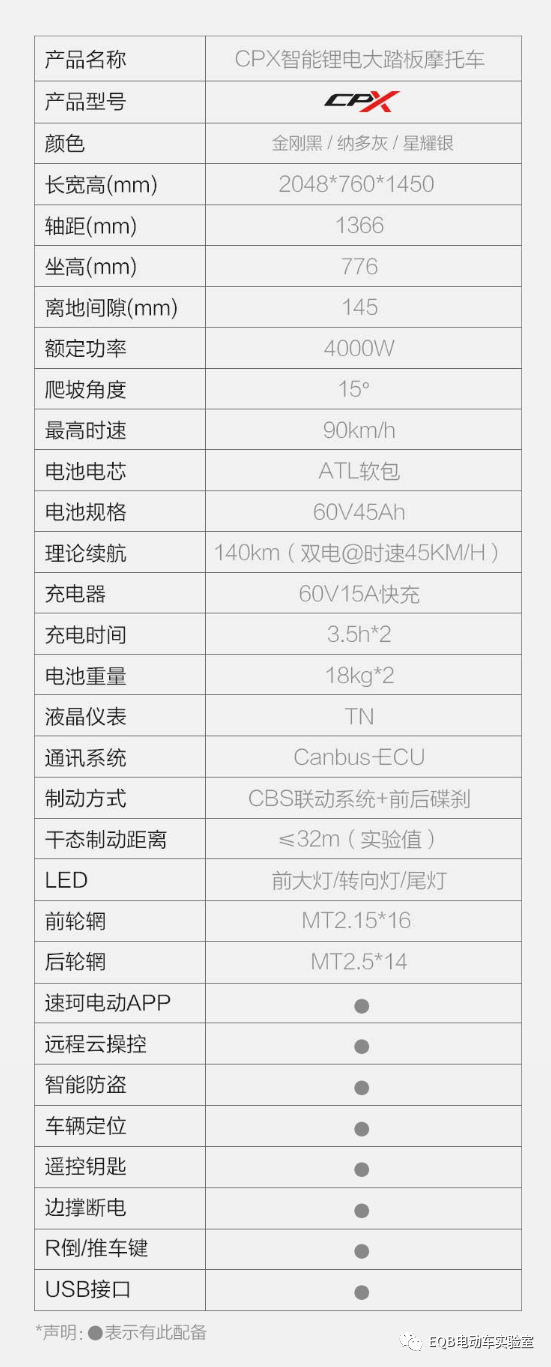 首先是續(xù)航方面,單電版本70km的續(xù)航水平對(duì)標(biāo)目前國(guó)內(nèi)追求續(xù)航的主流電動(dòng)摩托車(chē)產(chǎn)品來(lái)說(shuō),這樣的一個(gè)數(shù)據(jù)只能排在中游。其次是,速珂CPX為了能夠具有高性能以及高續(xù)航,不得不取消座桶空間。