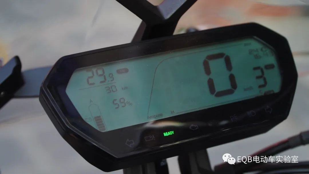在一天的騎行中,車(chē)輛共計(jì)行駛30km,包括急加速、急減速以及長(zhǎng)時(shí)間高速行駛,最終表頭顯示車(chē)輛剩余電量為59%。經(jīng)過(guò)計(jì)算,滿電狀況下車(chē)輛最大續(xù)航約在70km左右,基本符合廠家給出的單電70km續(xù)航水平。