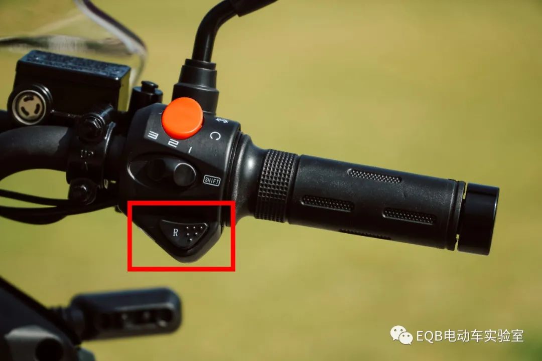 右手手把上配有助力推車(chē)及倒擋切換按鈕。雖說(shuō)這樣的一個(gè)功能可能在日常生活中并不會(huì)經(jīng)常使用,但對(duì)于在一些坡度較大需要倒車(chē)或者推車(chē)的條件下,這樣的一個(gè)配置就會(huì)顯得非常貼心。