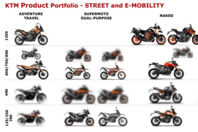 KTM的專利就展示了一輛摩托車的圖紙,只是為了說明前大燈的安裝位置以及車架,并沒有顯示當前的型號。它似乎顯示出390 Duke的輪廓。發(fā)動機未變,但底盤,副車架和油箱是新的。如果更仔細地看,該圖與Duke并不完全匹配,因為其合金輪轂已被金屬絲輻條設計所取代,整體上更接近滑胎摩托車的特征。而KTM之前公布的新車計劃也已經暗示這種車型的存在,在“ Supermoto / Dual Purpose”標題下以125/250/390顯示了兩張模糊的圖片(上圖)。