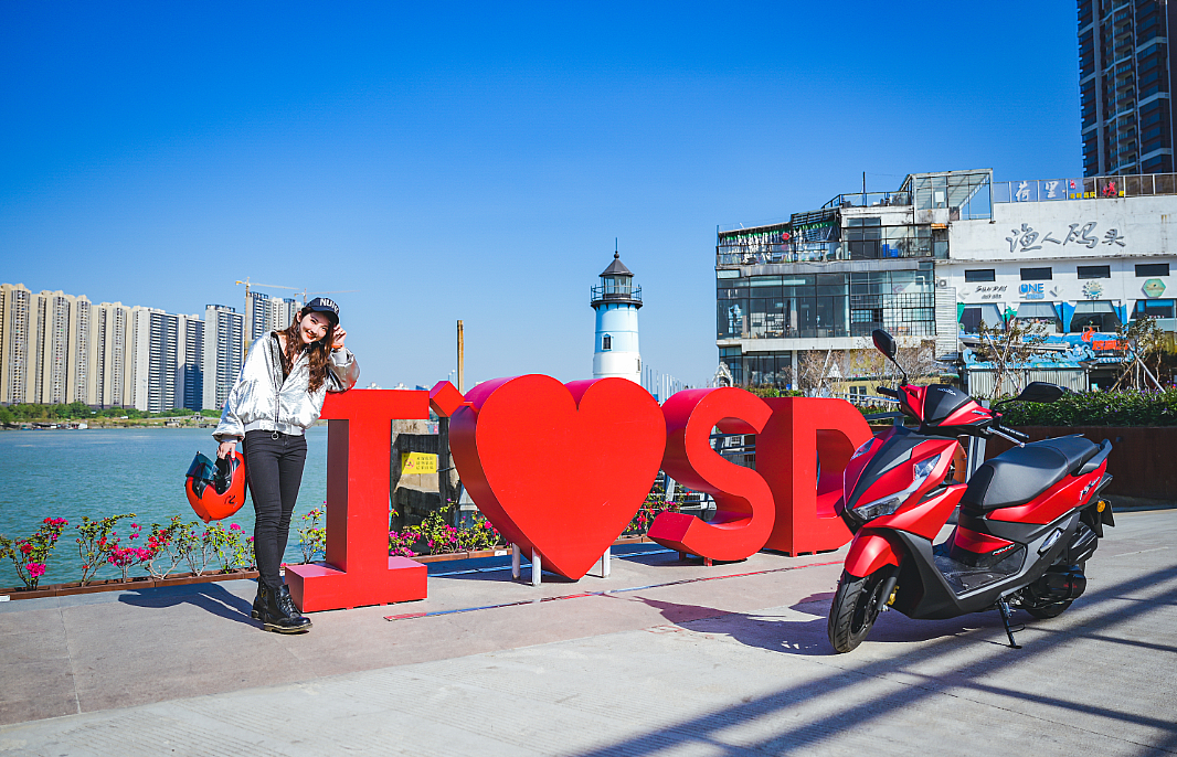 順德的各個美食和打卡點遍布在大街小巷,且道路交通狀況較為擁擠,選擇摩托車前往會比騎車更加高效,能節(jié)省不少時間和體力。但漂亮的小姐姐加上外觀潮酷的NX125,銳利靈動的LED前大燈和位置燈個性十足,菱形的運動尾燈設(shè)計極富立體層次感、棱角分明,讓它在車流中每時每刻都能成為聚集視線的焦點。