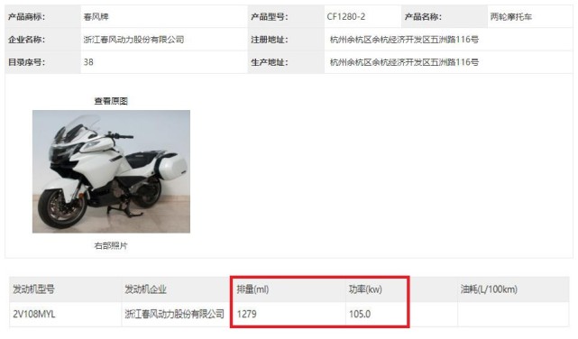 搭載來(lái)自KTM的1279cc排量LC8 V型雙缸發(fā)動(dòng)機(jī),最大功率105kw,最大扭矩應(yīng)該還是120Nm,與警用版保持一致。