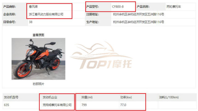 新車爆料:國(guó)產(chǎn)790Duke 春風(fēng)1250TRG 申報(bào)完畢