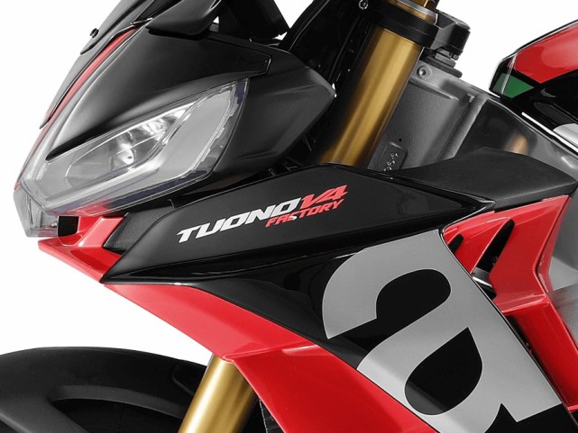 Aprilia還為Tuono V4提供了邊箱作為選配,Tuono V4 Factory版本則,具有ÖhlinsSmart EC 2.0半主動懸架。Tuono V4有柏油灰或冰川白兩種顏色,Tuono V4 Factory版則是亞黑色。