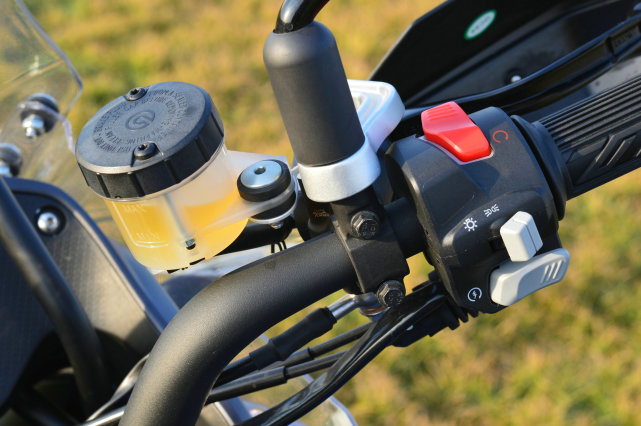 左右手把的按鍵均為時下流行的背光按鍵模組,無論是質感還是按鍵的手感,都遠超普通的通用車把按鍵。需要注意的是左手邊有兩個小按鍵是設置儀表的,之前TRK上的ABS開關按鍵被取消。