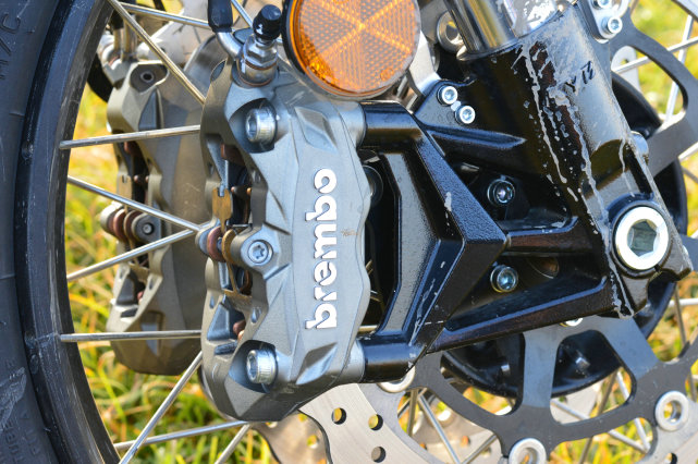 Brembo的直推上泵以及剎車油壺逼格滿滿,剎車牛角可調,有了這些東西你就能體驗到,前剎車只需要“一指禪”的輕松操作。