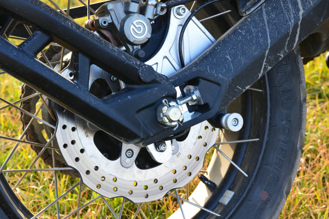 可調節(jié)的KYB倒立式前叉和后避震是一大賣點,前減震行程140mm,后減震行程45mm,雖然原廠的調校偏硬偏運動,但不喜歡的話可以自己設定。能調節(jié)的最大好處,就是面對不同的路況和使用需求,會有更好的適應性。