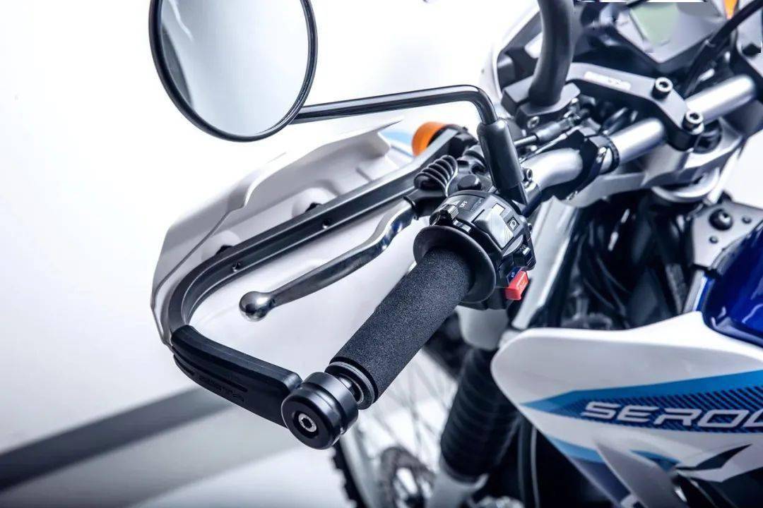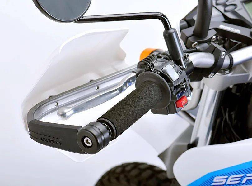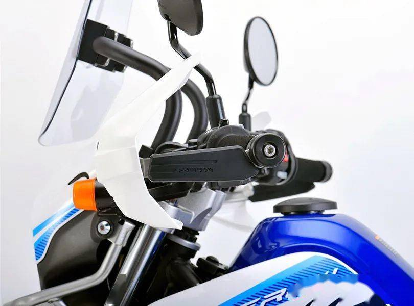 一系列的改裝項目中,亮點包括了有著探險車型風格的、可調(diào)節(jié)迎風角度的前風擋,以及車把兩端的、有著較大迎風面積的手部護罩,兩端的握把、采用了獨特的海綿材料制成,此舉可降低駕駛過程中,因為長時間受氣流、震動的影響而造成的疲勞。