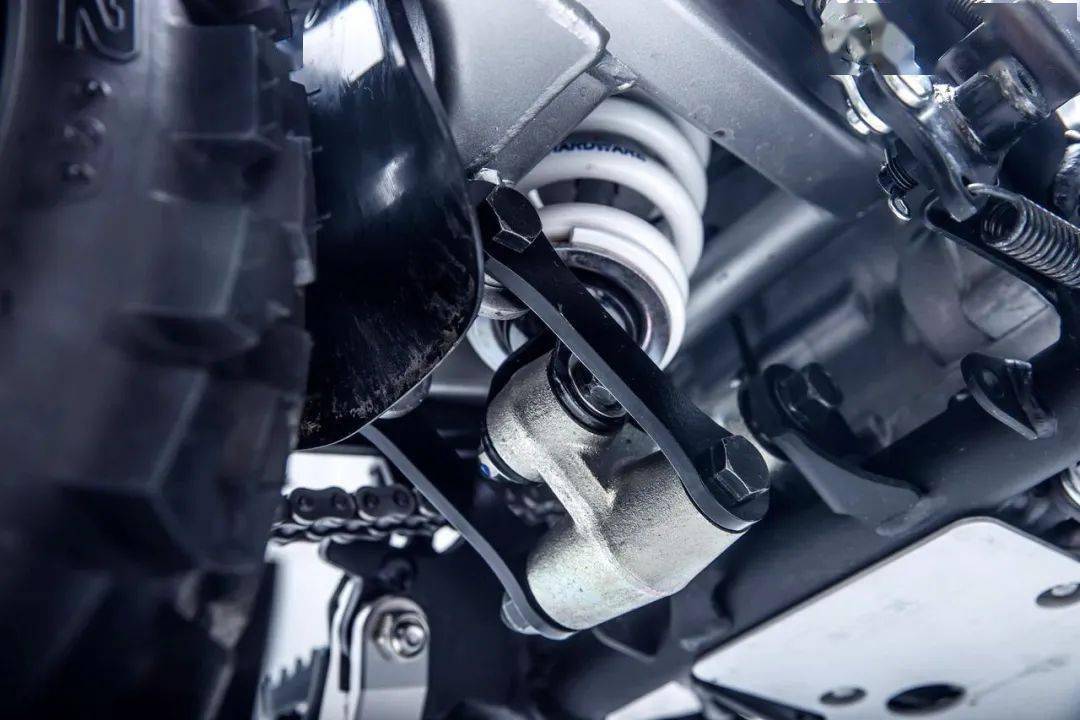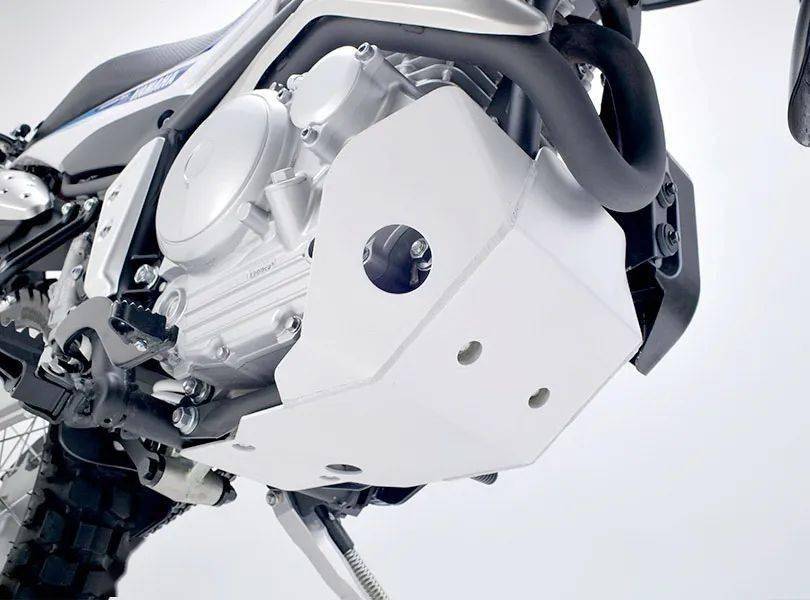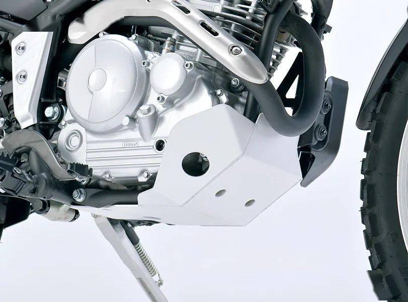 其他的組件,還包括了金屬制的發(fā)動機底部護罩,釘狀的金屬腳踏,輕量化設計的邊腳架等。