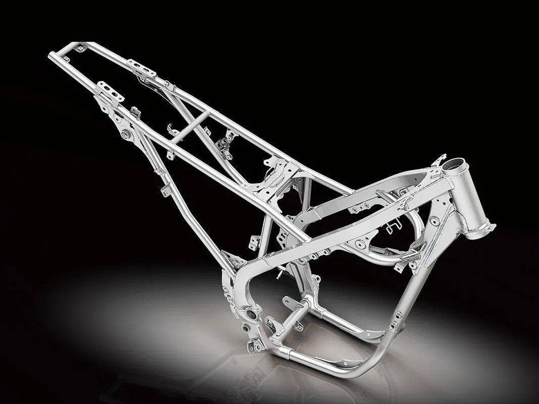 下圖:KLX230(下圖 1)與 KLX230R(下圖 2)的車(chē)架對(duì)比。