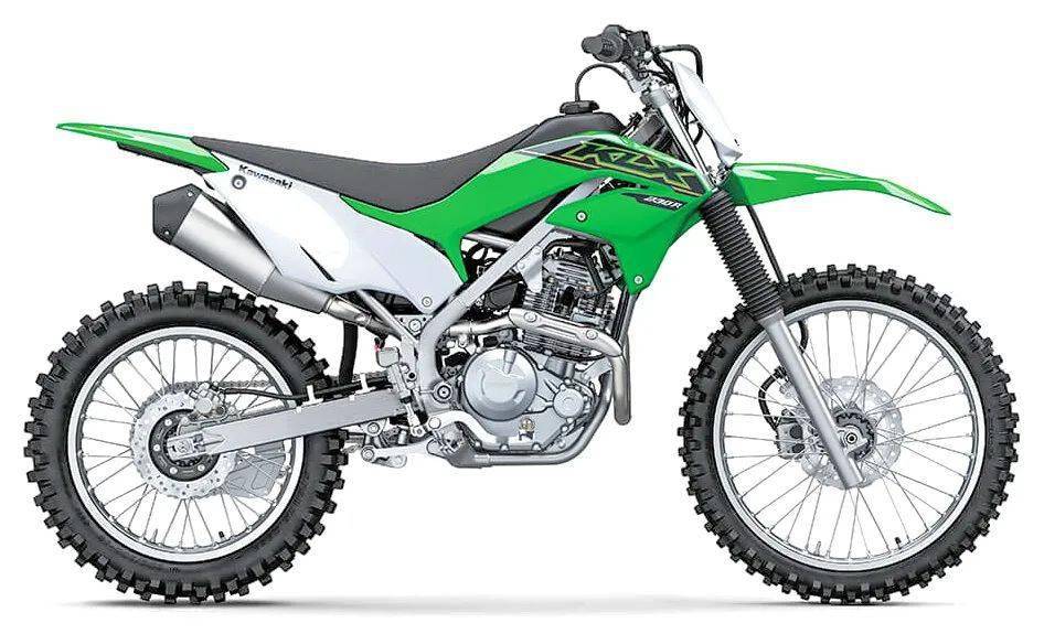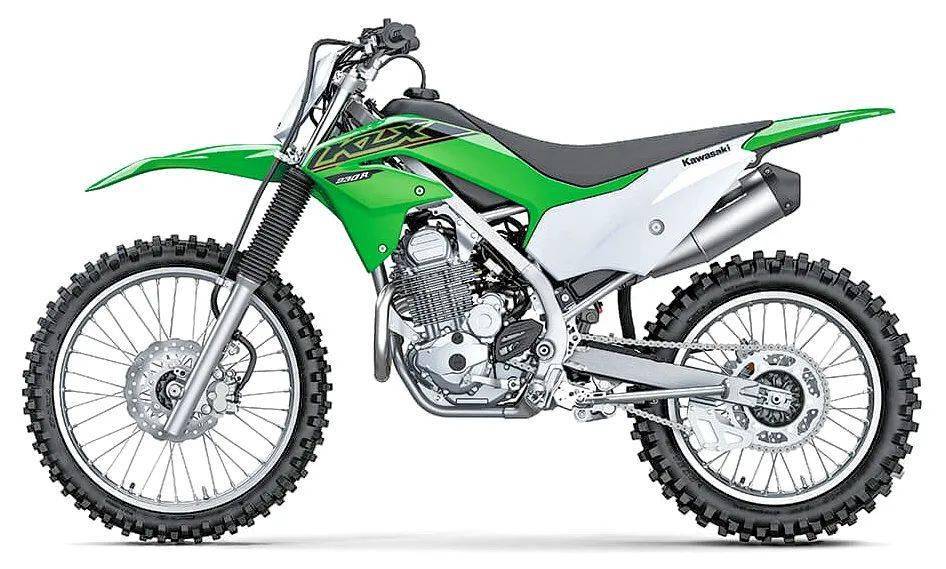 標(biāo)準(zhǔn)型的 KLX230R 同樣是一款非公路使用的、屬于全尺寸規(guī)格的入門(mén)級(jí)越野訓(xùn)練用車(chē),搭載一副風(fēng)冷四沖程單汽缸、SOHC 兩汽閥的發(fā)動(dòng)機(jī),缸徑、行程為 67 mm × 66 mm,排汽量 232 cc,最大動(dòng)力輸出 14 kw(約 19 匹)。