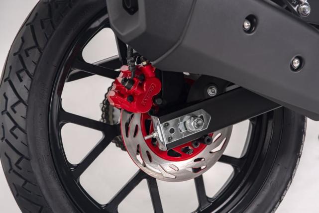 配備組合式制動(dòng)系統(tǒng)(CBS),前后均為單碟剎,也都配備雙活塞卡鉗,前制動(dòng)盤(pán)276mm,后制動(dòng)盤(pán)220mm,該車(chē)重量136kg,軸距1,330mm,座高785mm。