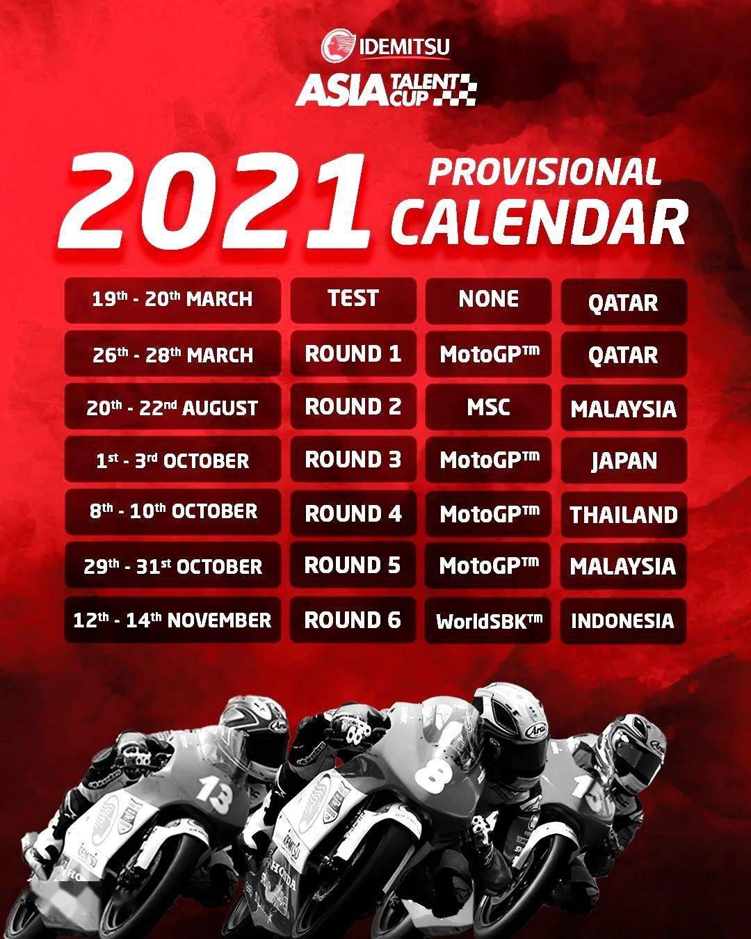 一月 25 日,F(xiàn)IM 和 Dorna 公布了經(jīng)過修訂的 2021 亞洲天才杯(Asia Talent Cup)暫定賽程表和參賽名單。