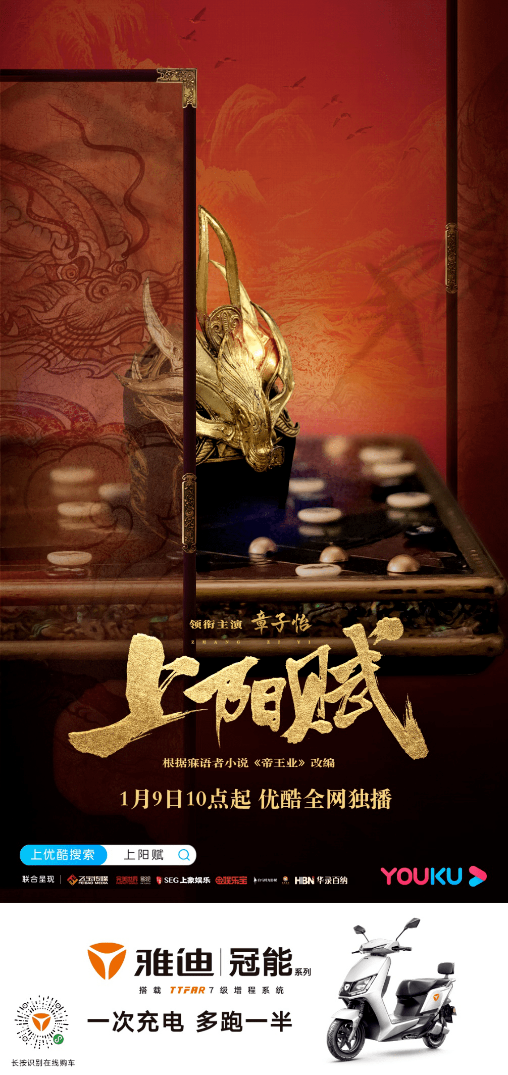 除了霸屏央視,雅迪還贊助播出年度巨制《上陽賦》,開啟熱門IP霸屏模式!