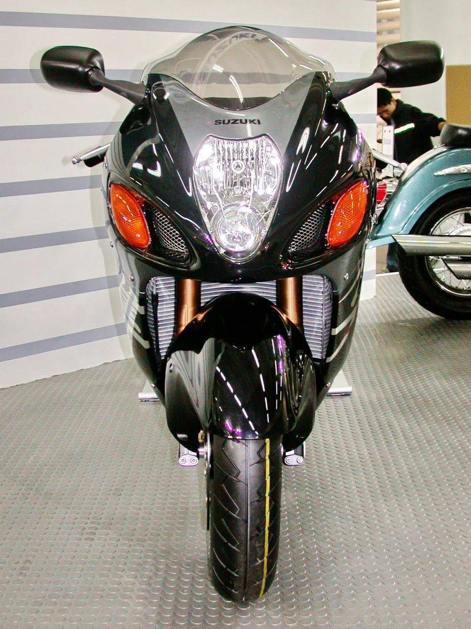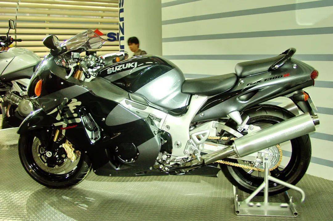 下面的圖片,2002 年度廣州車展,Suzuki 展臺(tái)上的第一代 GSX1300R Hayabasa 隼。