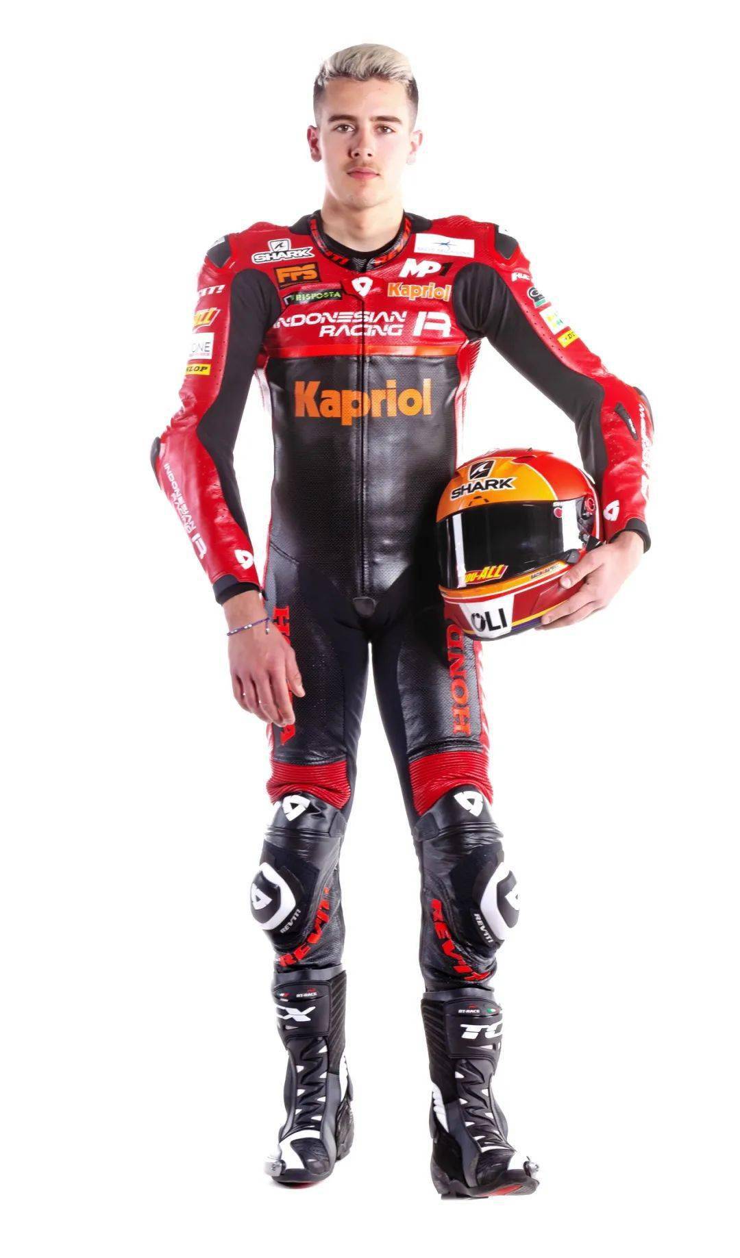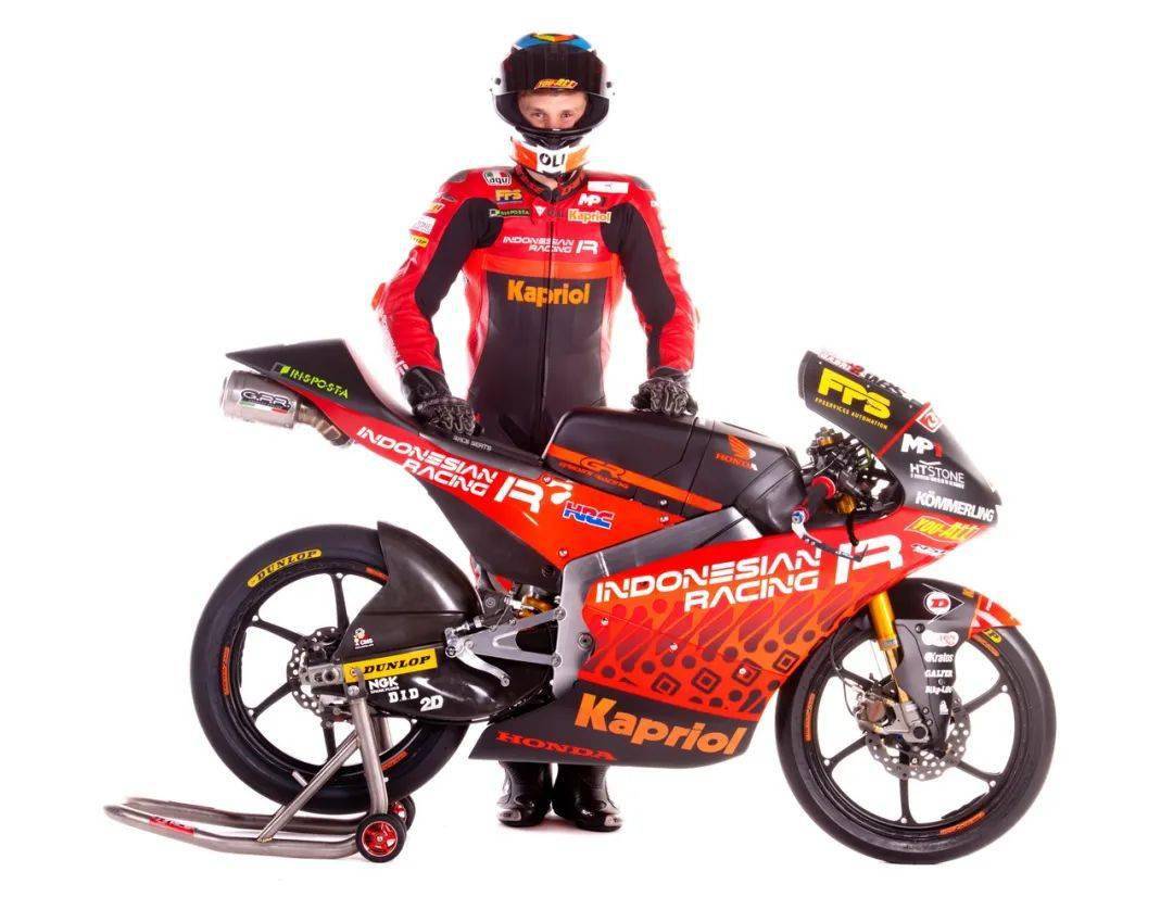 下圖:現(xiàn)年 24 歲的阿根廷車手羅德里戈和他的 2021' NSF250RW 賽車。