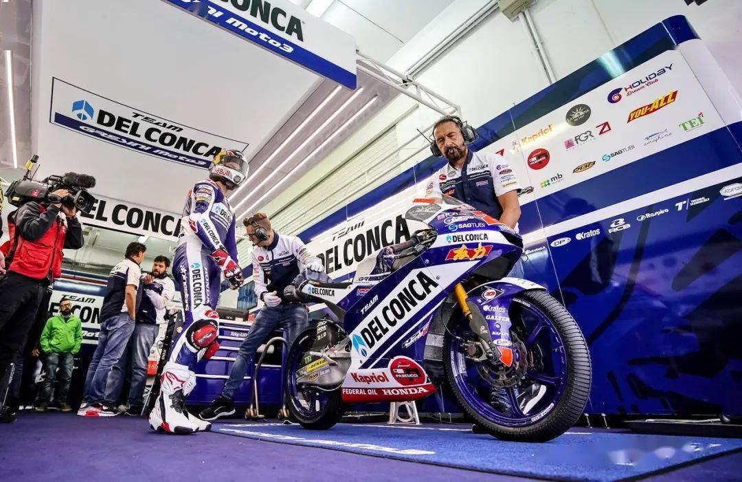 下面的圖片,在 2018 賽季里的吉斯尼 Moto3 車隊(資料圖片)。